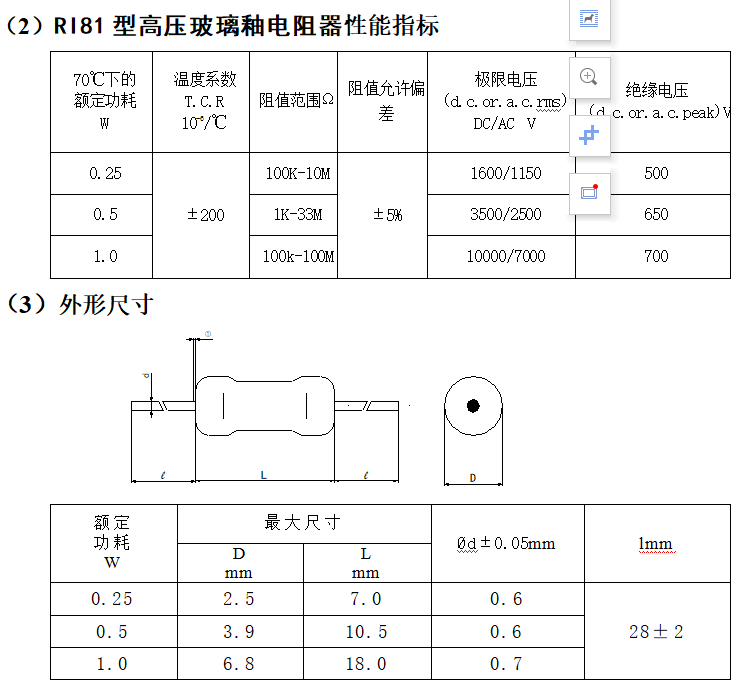 RI81型高压玻璃釉电阻器