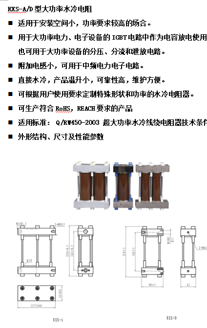 RXS-L-4500W-4×1.2Ω 高压水冷电阻器(专利号:2015 2 0919492.4)